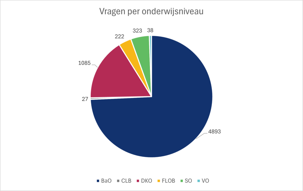 Ook tijdens het schooljaar 2024-2025 is het aantal vragen weer flink toegenomen, van 5805 vragen, naar 6588 vragen. We denken de verklaring te moeten zoeken in dezelfde vaststellingen als vorig jaar: